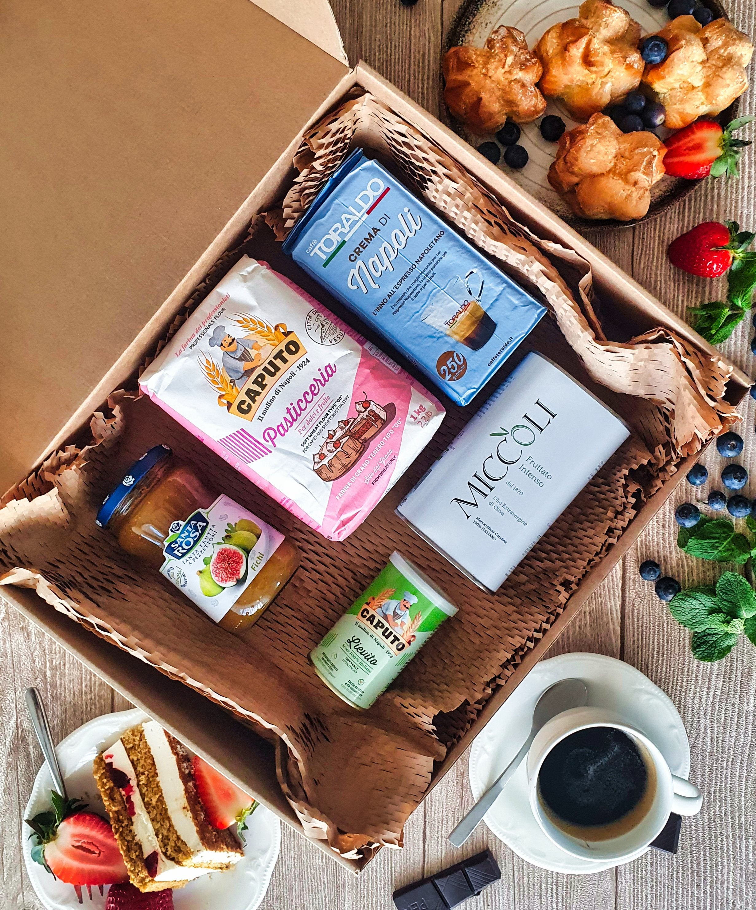Tai rinkinys, kuriame rasite viską – nuo miltų ir mielių iki džemo ir kavos – jūsų saldžiai pertraukai.