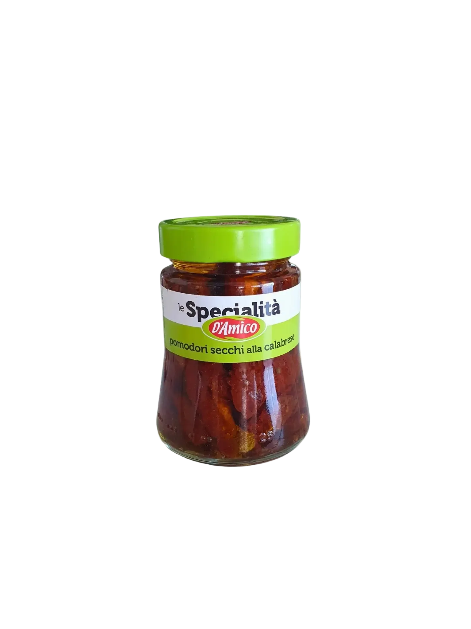 Saulėje džiovinti pomidorai le Specialita DAmico. Pomidorai rehidratuoti ir konservuoti saulėgrąžų aliejuje su prieskoniais. Pomidorai pasižymi intensyviu ir koncentruotu skoniu, kurį suteikia aliejus ir Viduržemio jūros žolelės, suteikiant jiems aromato. Puikiai tinka kaip užkandis, salotose, picose, brusketoms, makaronų patiekaluose.